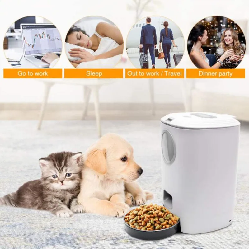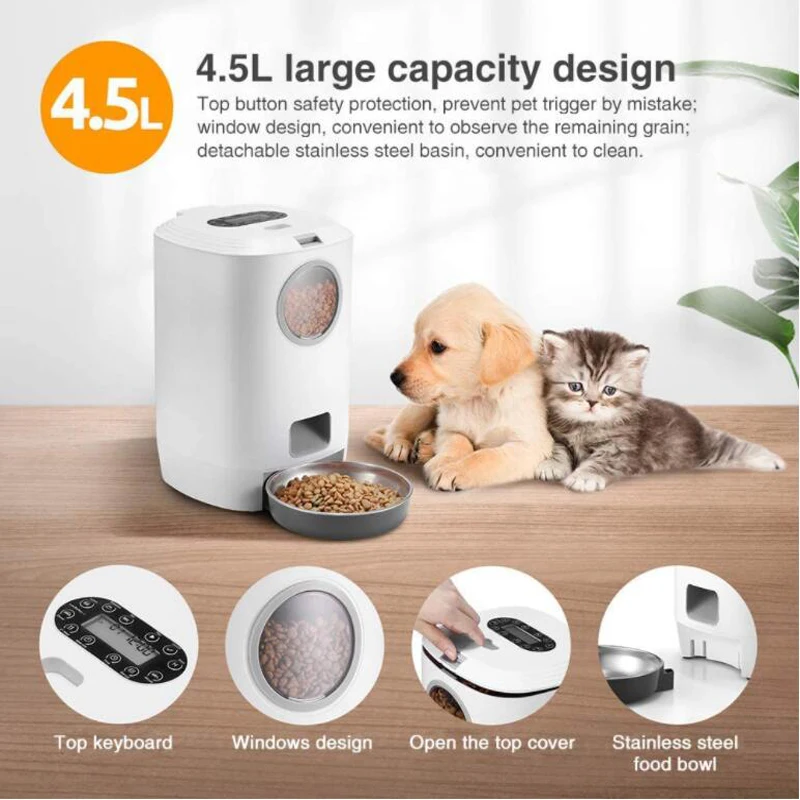 Отличный продукт. Программируемый 4 раза, поэтому идеально подходит для выхода в выходные и оставления двух маленьких кошек едят спокойно. Кроме того, голос, который можно оставить, сразу же привлекает кошек, которые приближаются к своим крючкам. Работает на секторе или с батареей без проблем.