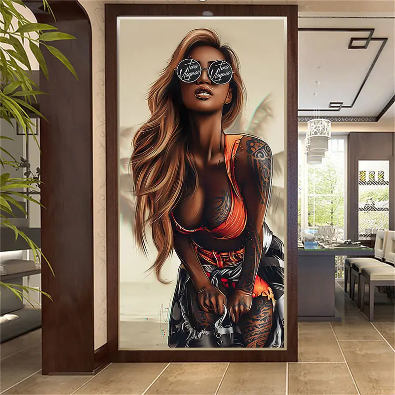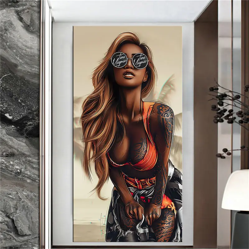 Абстрактная крутая сексуальная девушка с татуировкой холст картина одежда очки секс женщины плакаты и принты настенное искусство для гостиной домашний декор