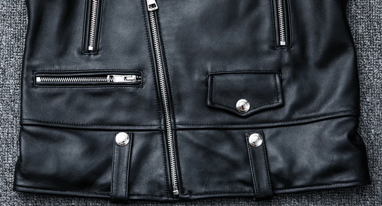 Мужская куртка из натуральной овечьей кожи, черная, мягкая, мотоциклетная, приталенная, короткая, весна-осень