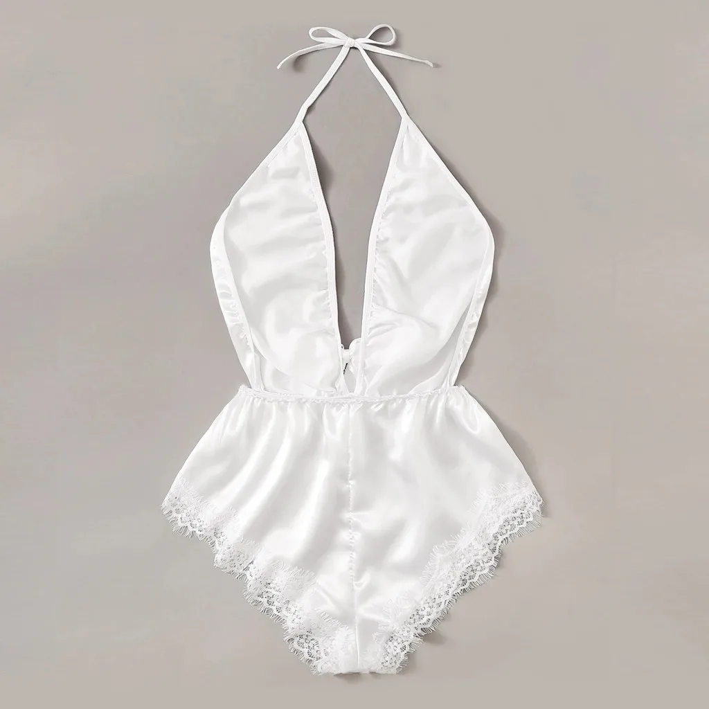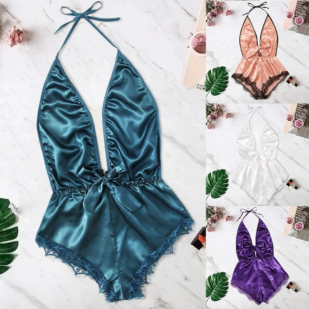 Женское нижнее белье с V-образным вырезом, шелковые сексуальное боди, женское белье, эротические костюмы с открытой спиной