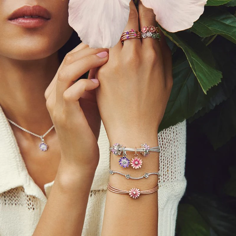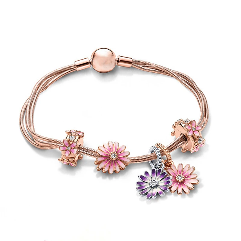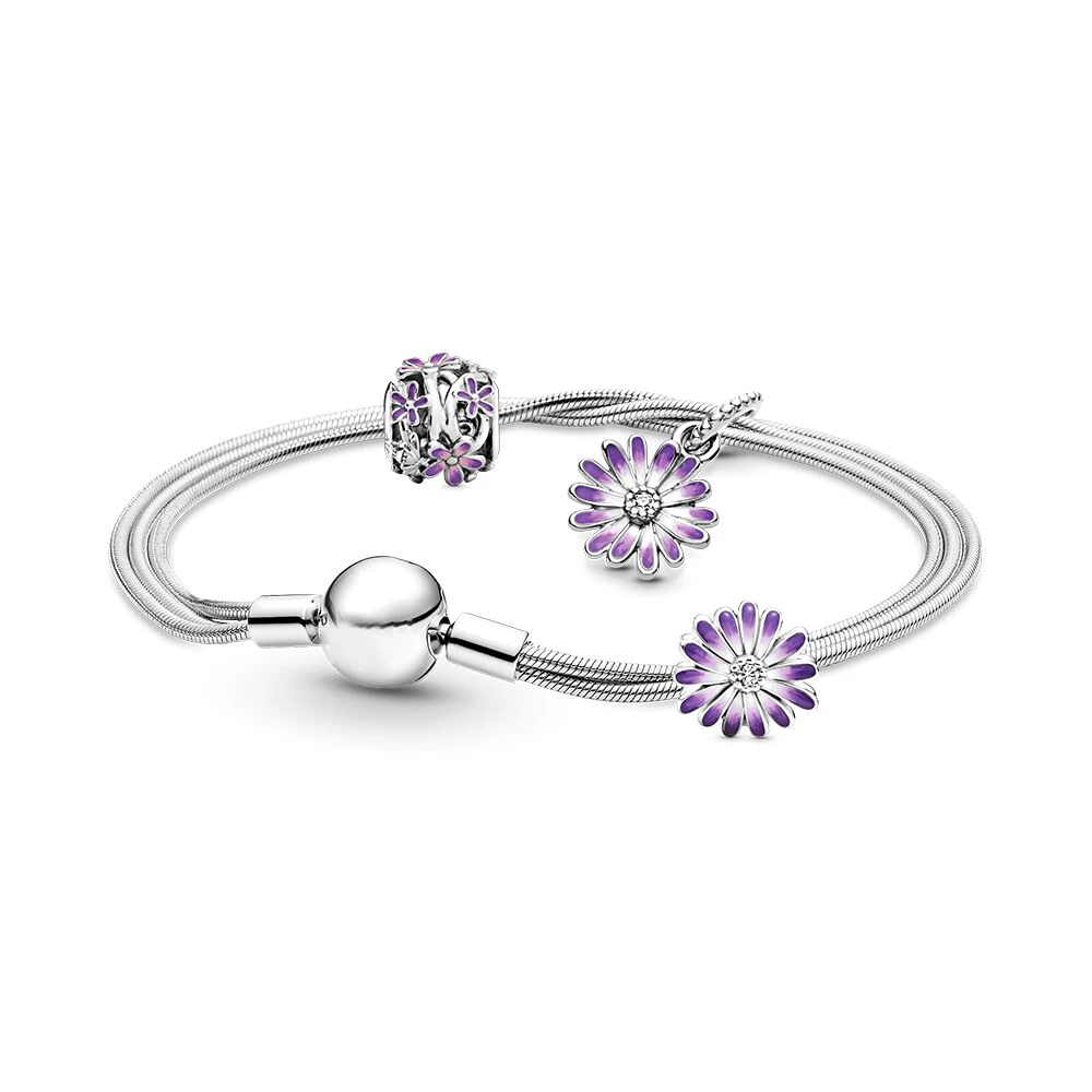Женский браслет из серебра 925 пробы, с подвеской в виде цветка