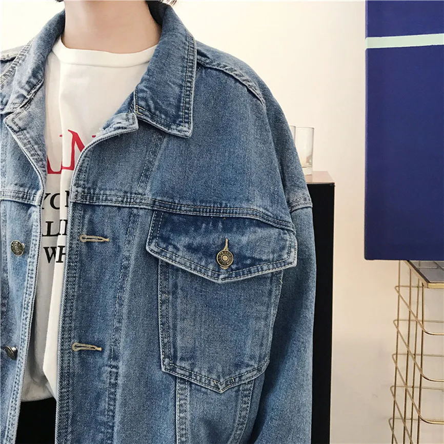 Женское джинсовое пальто в стиле бойфренда, ковбойская джинсовая свободная повседневная куртка в стиле ретро