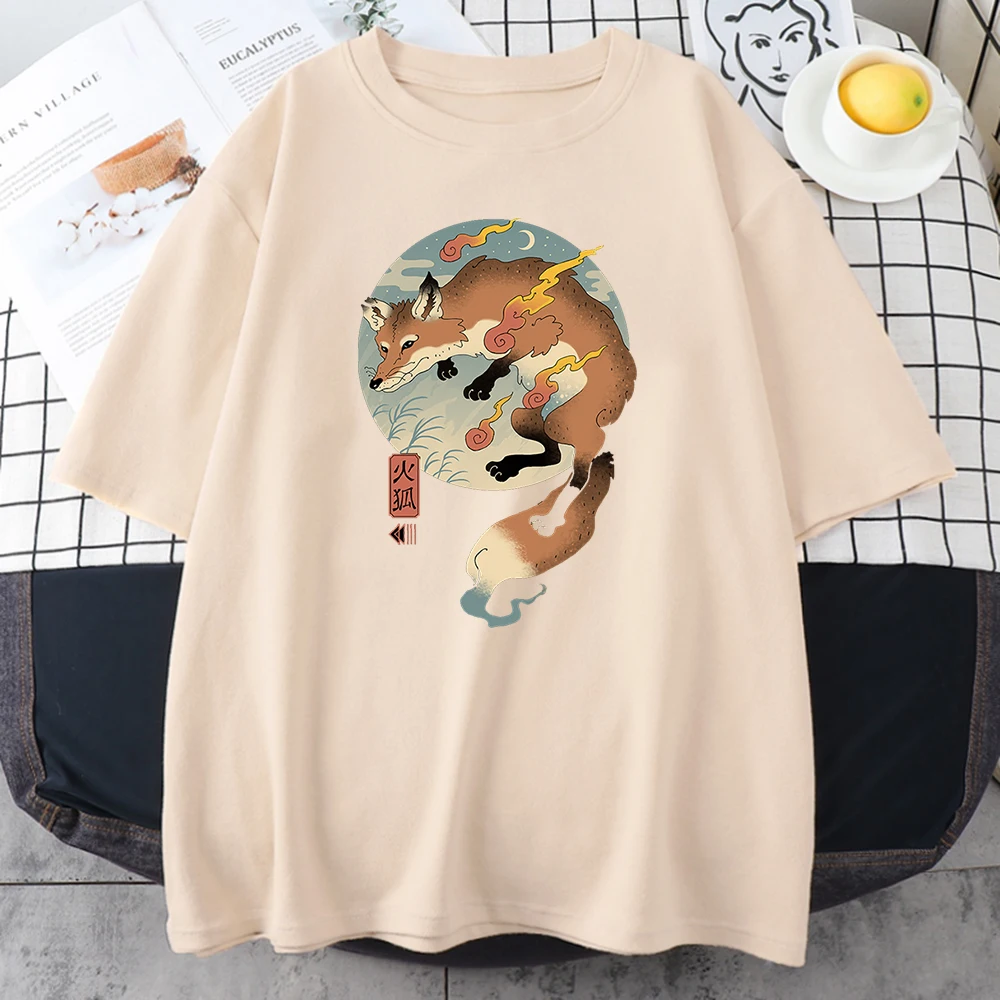 Футболка Fire Fox Ukiyoe женская в стиле Харадзюку, удобная модная рубашка, топ в японском стиле, мягкая рубашка в стиле оверсайз, лето 2021