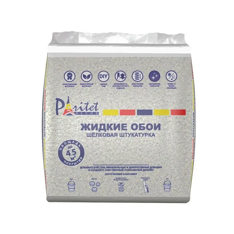 Время Просушки 72 часа Название бренда Paritet Происхождение Россия Вид материала 1 Жидкие обои Структура поверхности мелкорельефная Вид материала 2 Декоративная штукатурка Особенность Легкое нанесениевнешний вид товара