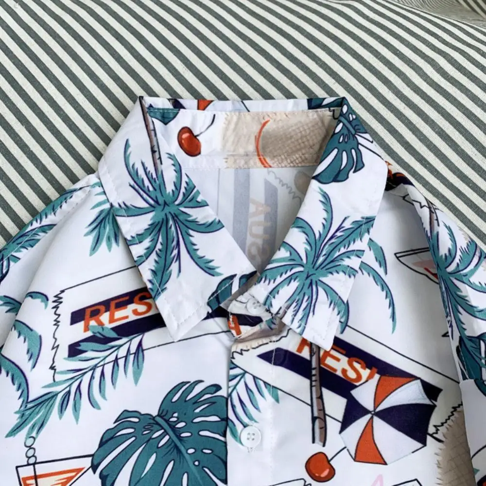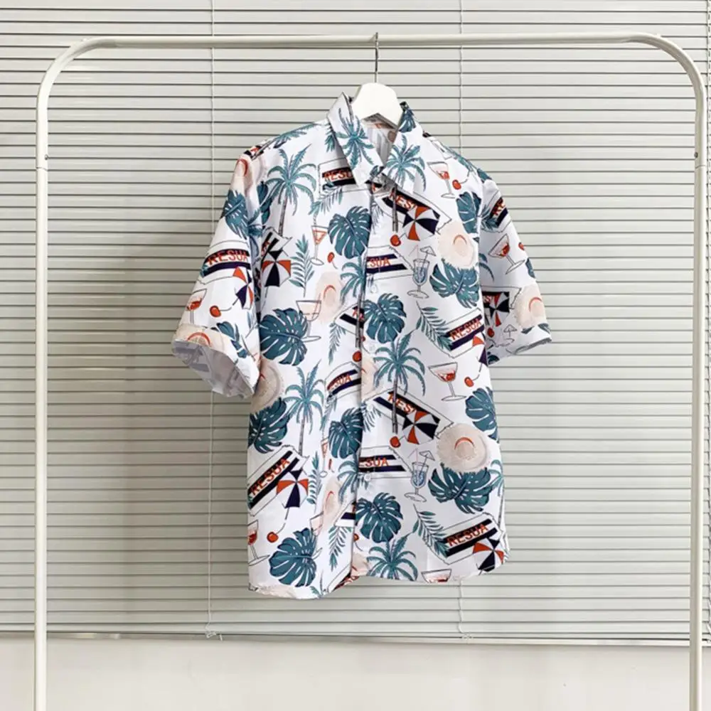 Винтаж цветочный Для Мужчин's Гавайская пляжная рубашка кокосовой пальмы с отложным воротником с коротким рукавом на пуговицах Свободные праздничное блузка для отпуска рубашка