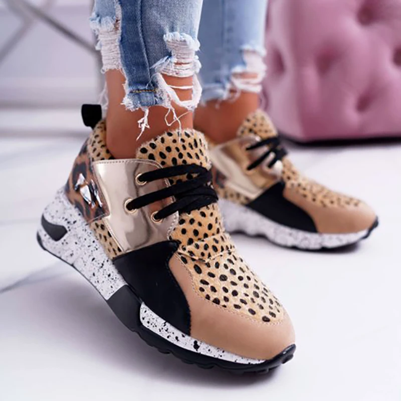 Женские кроссовки, новинка, модная женская спортивная обувь с леопардовым принтом, уличные кроссовки для бега, женская обувь со шнуровкой на толстой подошве
