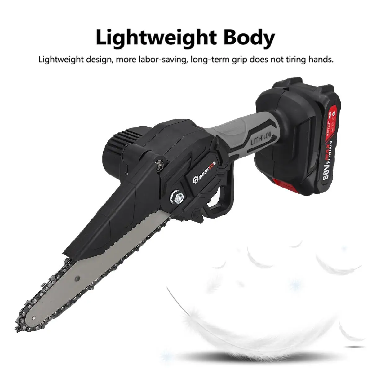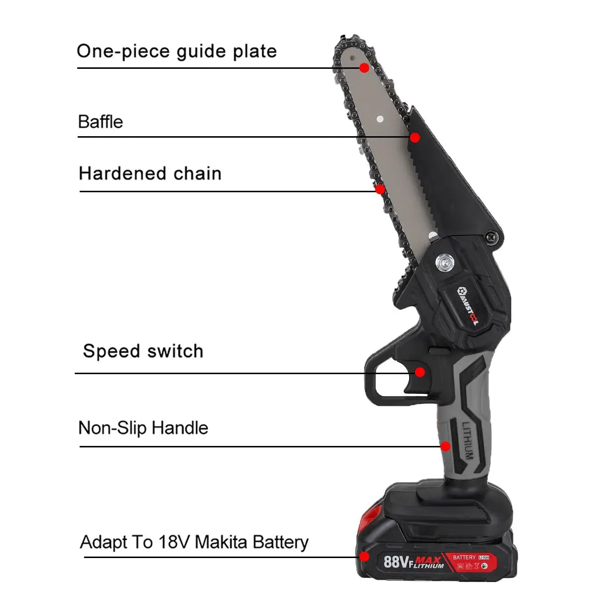 Посылка входит:Тип А1 хост1 Цепочка1 x направляющая пластина1 гаечный ключ1 отвертка1 x упаковочная коробкаТип B1 хост1 Цепочка1 x направляющая пластина1 или 2 литий-ионных аккумулятора1 гаечный ключ1 отверткаЗарядное устройство (110 В/220 В)-1 шт.1 x упаковочная коробкаХарактеристики:Наименование: Электрическая цепная пилаВилка (опция): вилка европейского стандарта/вилка стандарта СШАНапряжение: 88 вВыходная мощность: 1200 ВтСкорость холостого хода: 10000 об/минПривод двигателя: двигатель из чистой медиРежим питания: литиевая батарея1 * Емкость аккумулятора: 9000 мАчЕмкость аккумулятора: 2*9000 мАчПолная длина цепочки: около 15,24 см/6 дюймовДлина направляющей пластины: около 18,7 см/7,4"Цвет: серыйОсобенности:-С подсветкой, легко работать ночью-Адаптируется к аккумулятору Makita 18 в-Беспроводной Переплет: Легкая наружная резка-Двигатель из чистой меди: 1200 Вт, мощная мощность, длительный срок службы-Конструкция ручки: удобный захват, в соответствии с дизайном человеческого тела-Питание литиевой батареи: Попрощайтесь с проблемой поиска источника питания-Простота в использовании: не нужно разбирать, поверните винт, чтобы отрегулировать герметичность цепи-Высококачественная направляющая цепь: острая износостойкая, глубокая закалка более износостойкая, рез ровный-Бесступенчатый переключатель скорости: гуманизированная конструкция переключателя, регулировка скорости резки в соответствии с давлением-Эффективное отведение тепла: конструкция нескольких выпускных отверстий на фюзеляже может эффективно предотвратить пригораниеСветильник вес фюзеляжа светильник и портативный, управление одной рукой, удобно держать, не устает держать в течение длительного времени-Четыре функции интеллектуальной защиты: защита от перегрузки по току, защита от перенапряжения, защита от перегрева, защита от зарядки и разрядки, автоматическое отключение при высоком нагревеПримечание.1. Замеры сделаны вручную, поэтому возможны отклонения на 1-2 см.2. Пожалуйста, поймите, что цвета могут отличаться от отображаемых на дисплее.3. Пожалуйста, прочитайте руководство пользователя перед использованием.