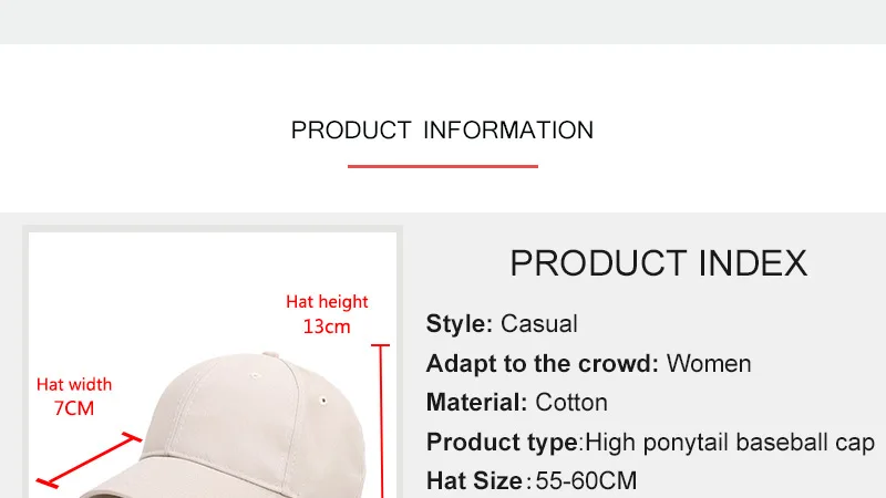 Кепка для хвоста однотонная женская, регулируемая хлопковая бейсбол...