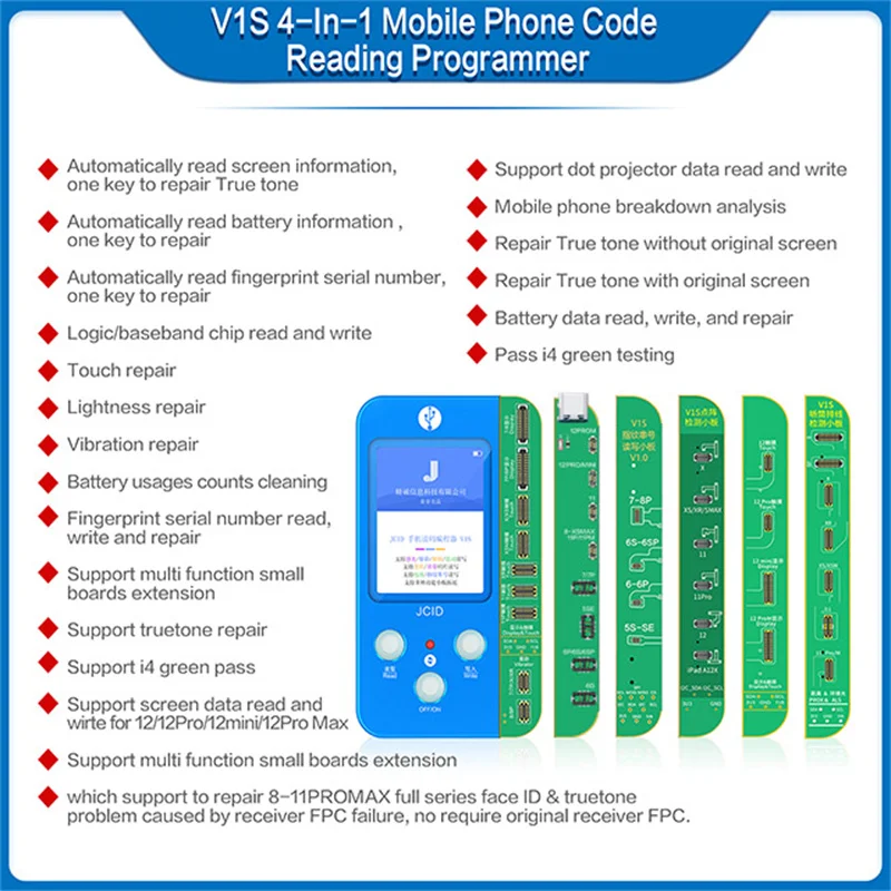 Программатор JC V1S для ремонта точечной матрицы, Фоточувствительный оригинальный цветной тестер отпечатков пальцев для аккумуляторов X XS XSMAX 11 11Promax 12Pro