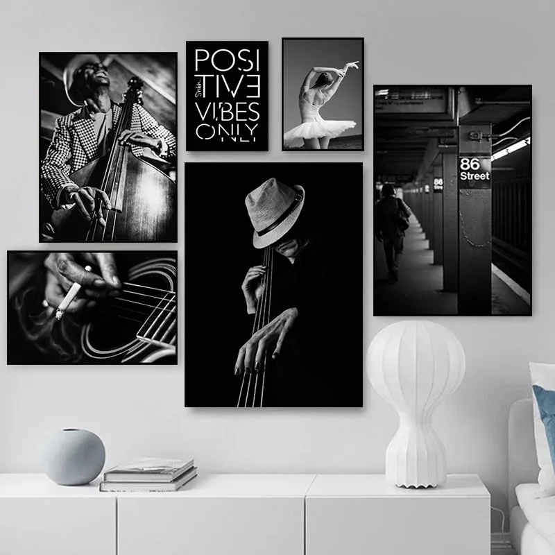 Черно-белая музыкальная Настенная картина для мужчин, украшение для спальни, балетная картина для девочек, Настенная картина, украшение для комнаты для подростков HB001