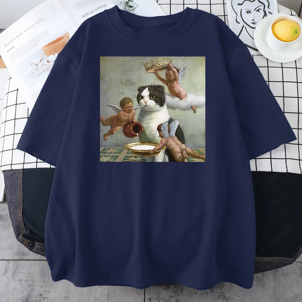 Женская футболка с принтом кошки и питьевой воды, летняя Удобная фу...