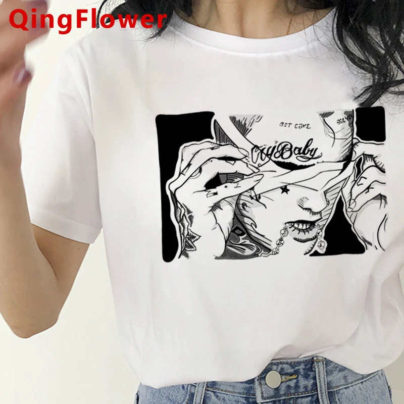 Lil открытым футболка для женщин с принтом размера плюс гранж футболка в уличном стиле