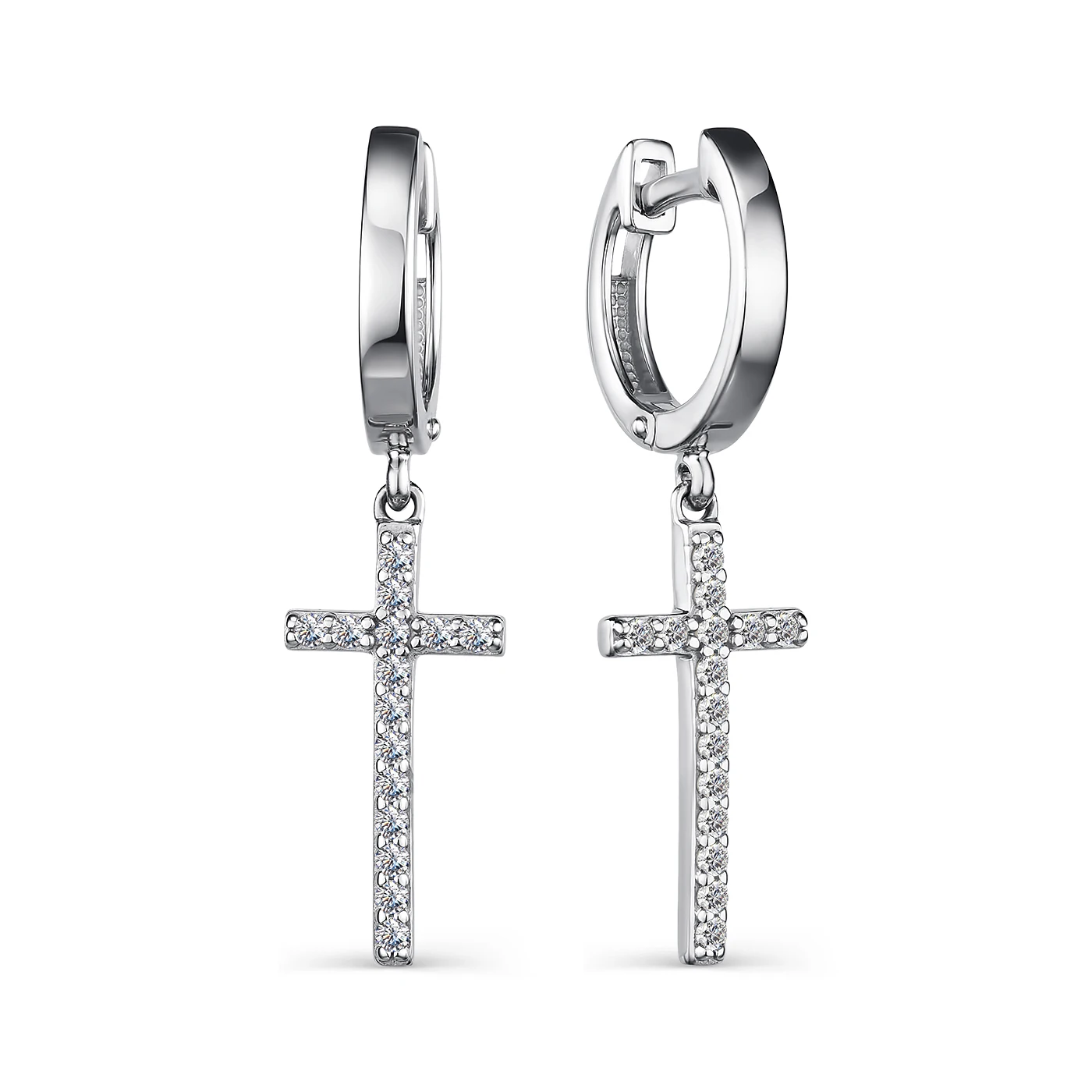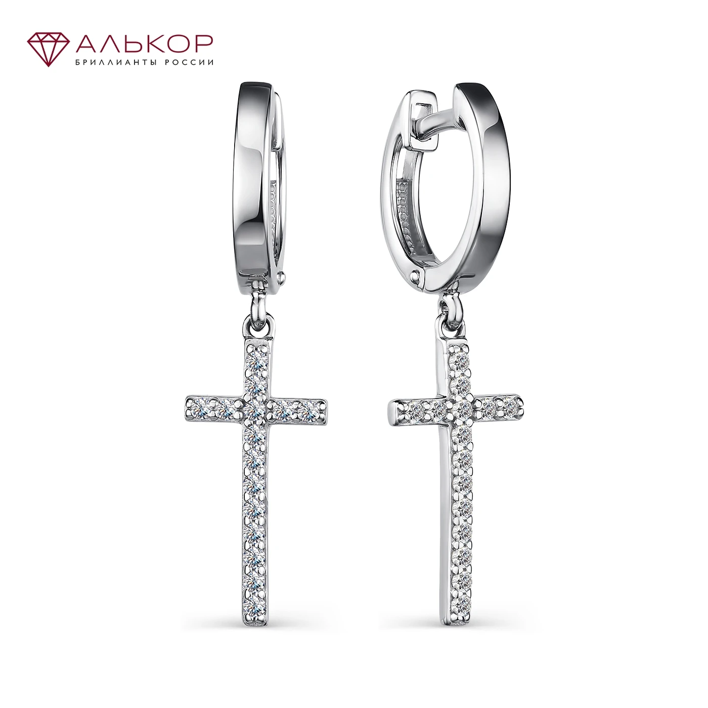 Серьги из серебра 925 с покрытием из родия, вставка: фианит. Беспла...