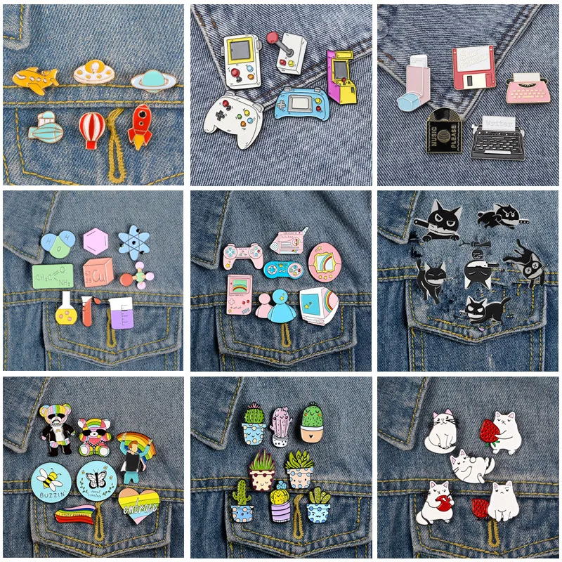Оптовая продажа, Детская игровая консоль для ракеты, Горшечное растение, Феминизм, химический инструмент, кошка, рюкзак, эмалированные значки на лацкан, подарки