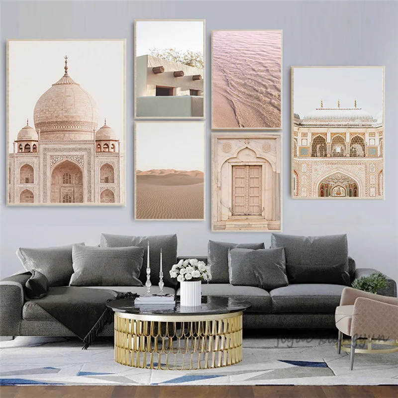 Исламское искусство стены холст картины листьев растений пляжные Архитектура картину печати северных пейзаж из путешествия плакат домашний декор