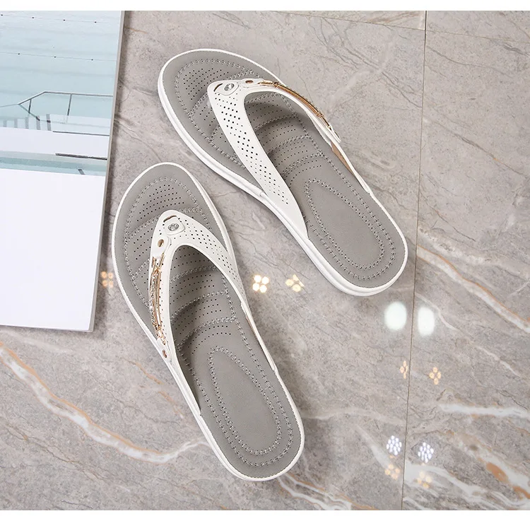 Шлепанцы женские с металлическими кнопками, пляжные сандалии на танкетке, пляжные шлепанцы для отдыха, летняя модель 2021