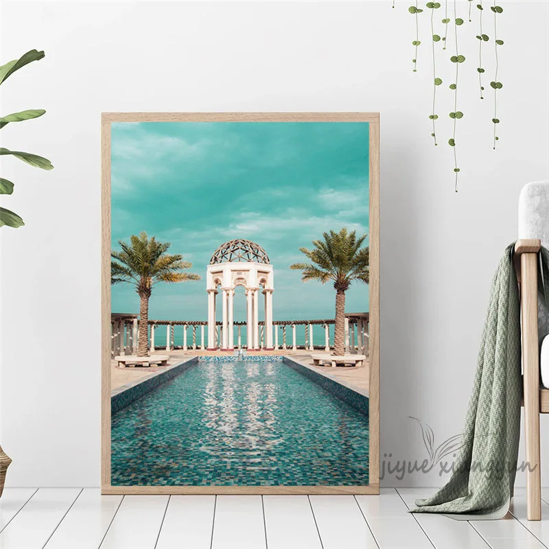 Современная картина в скандинавском стиле с изображением пляжного пейзажа, домашний декор, настенная Картина на холсте, постер с изображением морского берега и кокосового дерева