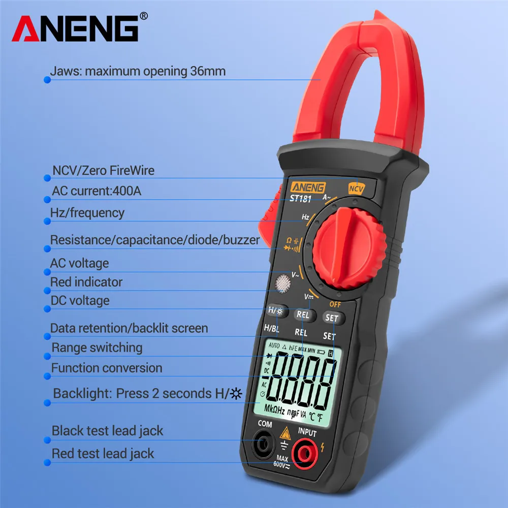 ANENG ST181 цифровой клещи DC/AC Ток 4000 отсчетов мультиметр Амперметр Тест напряжения er автомобильный усилитель Гц Емкость NCV Ом Тест