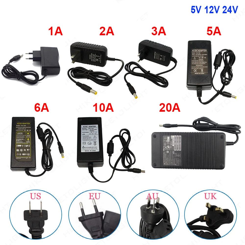 DC5V 12V 24V светодиодный адаптер Освещение Трансформатор 2A 3A 5A 10A 20A Питание гнездовой разъем для светодиодный ленты CCTV Камера фрезерный станок