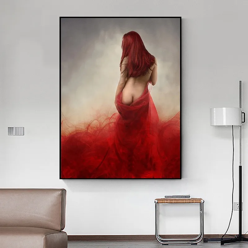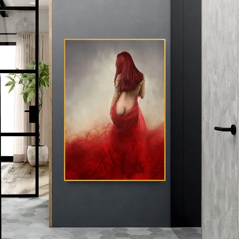 Женщина в красном цвете сексуальное эротическое настенная живопись с обнаженными фигурами из плотной ткани Плакаты принты домашний декор Картины для межкомнатных дверей картина без рамки украшения комнаты