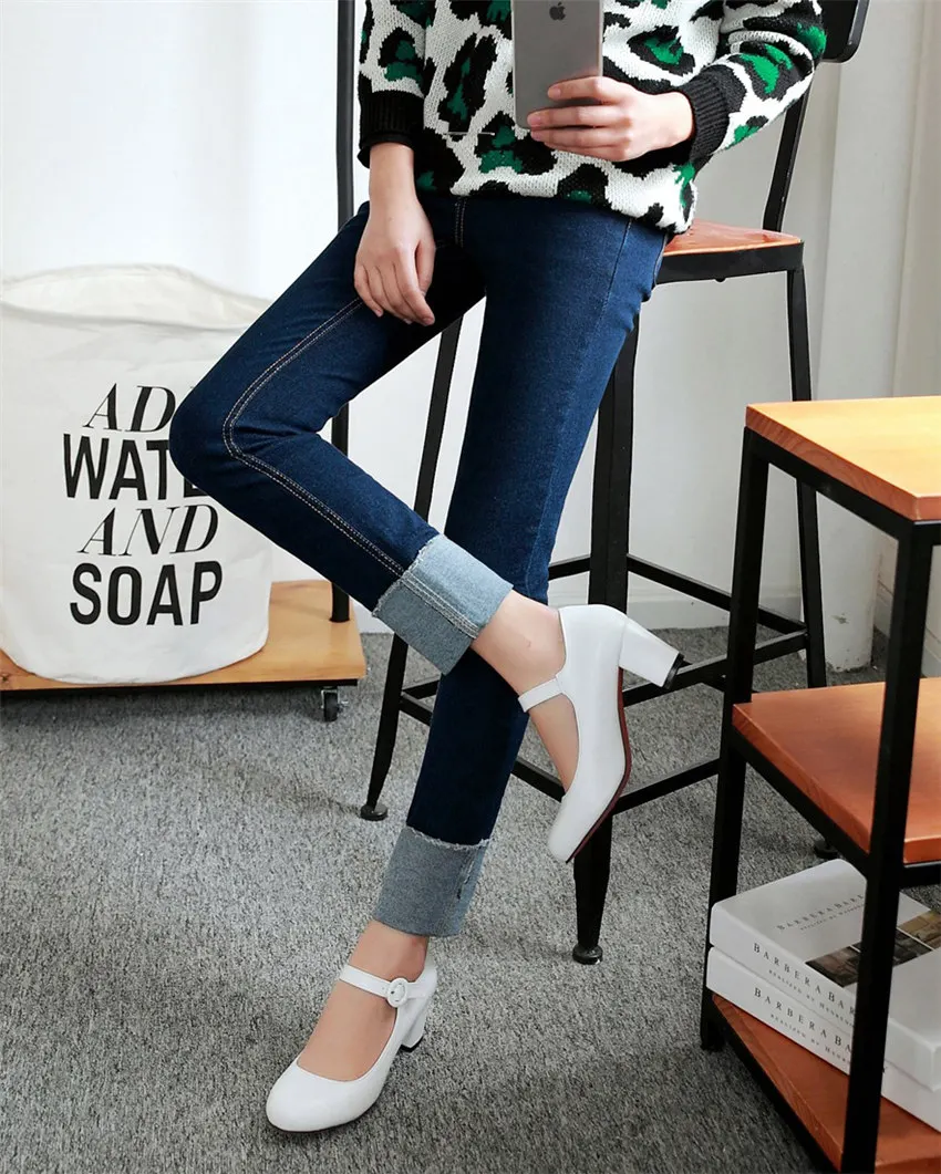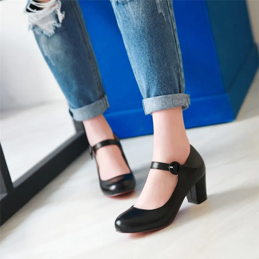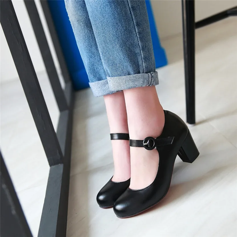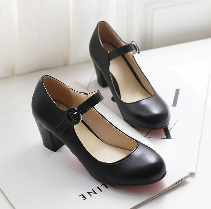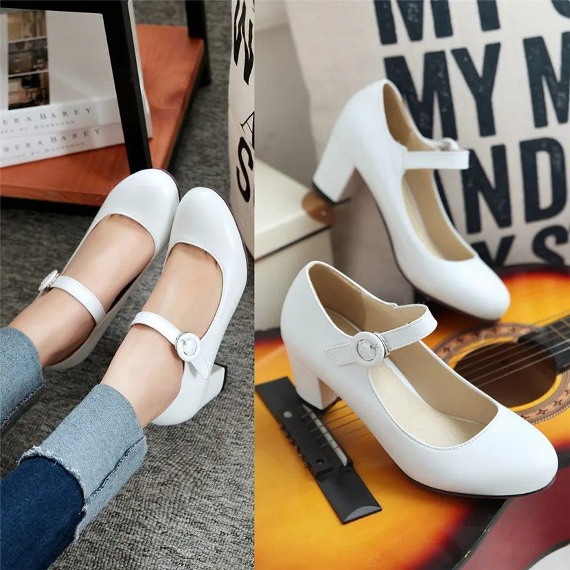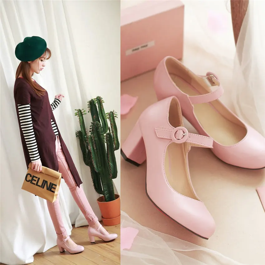 Милые женские туфли-лодочки; Цвет черный, белый, розовый; Туфли Mary Jane на высоком квадратном каблуке; Сезон весна-лето; Женские офисные туфли в стиле Лолиты с милой пряжкой и круглым носком