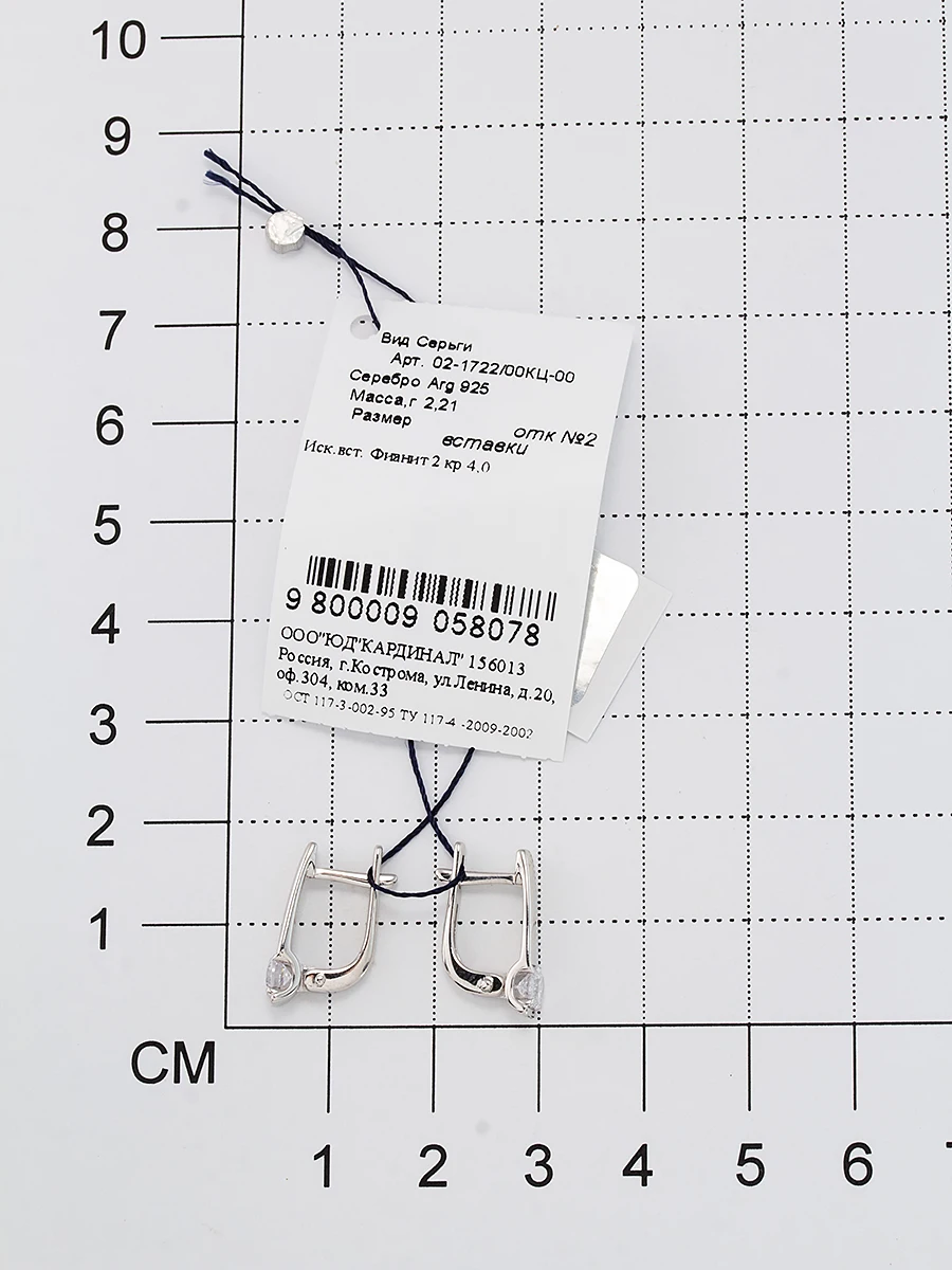 КомплектацияСерьги, бирка, пломба