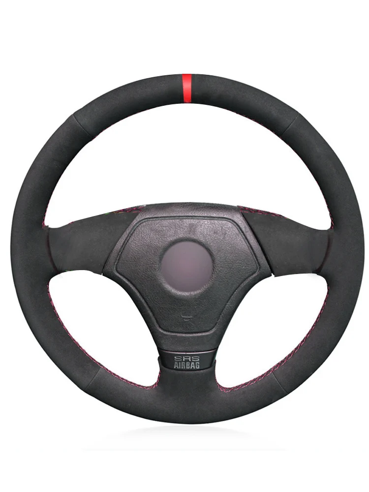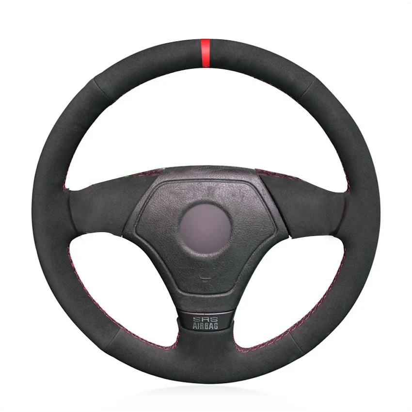 Черная замша красный маркер чехол рулевого колеса автомобиля для BMW 3 серии E36 E46 1995-2000 5 серии E39 1995-1999 8 серии E31 1995-1997