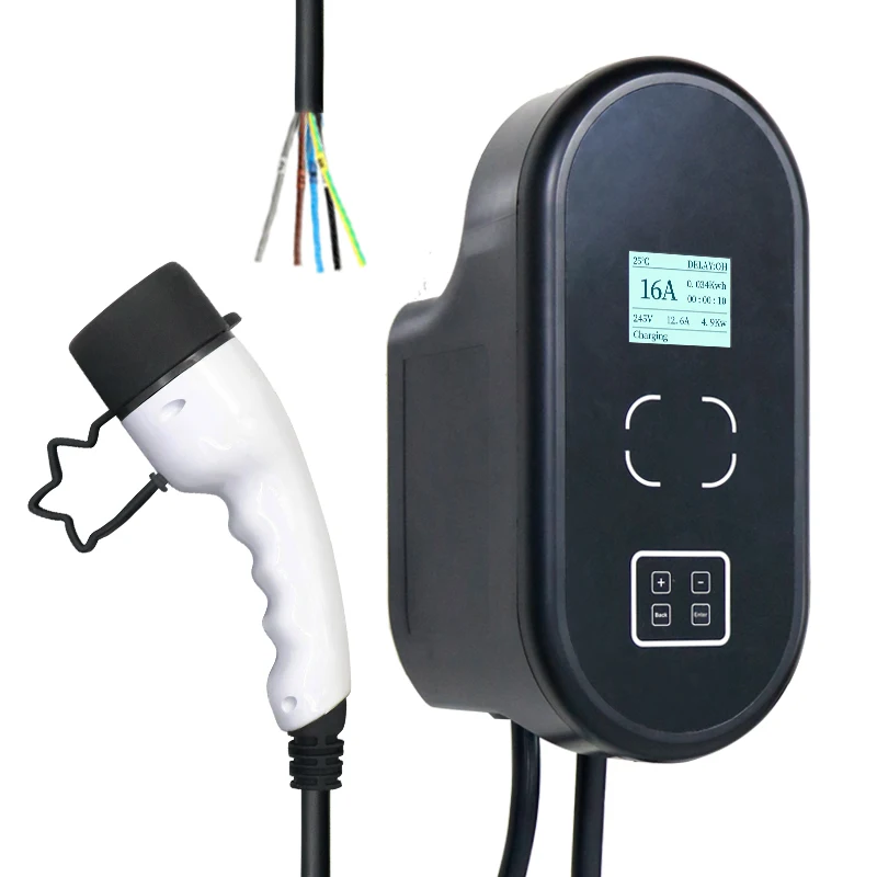 1.16A/32 A, 240 В, 3.6 кВт/7.2 кВт/11 кВт/22 кВт, уровень 2 домашняя зарядная станция EV.2. Простота в использовании, не нужно приложение для его запуска или подключения к домашней сети.3. Станция использует пластик и АБС-пластик, чтобы быть прочнее. Режим пуска кнопки и простая установка.4. ЖК-дисплей для отображения всех данных автомобиля на зарядной станции во время зарядки. Вы можете увидеть состояние зарядки, включая ток, напряжение и температуру. Винты помещаются в коробку, поэтому вам не придется беспокоиться о падении экрана.5. Кабель 5 м оставляет достаточно места между вашим автомобилем и зарядной станцией.