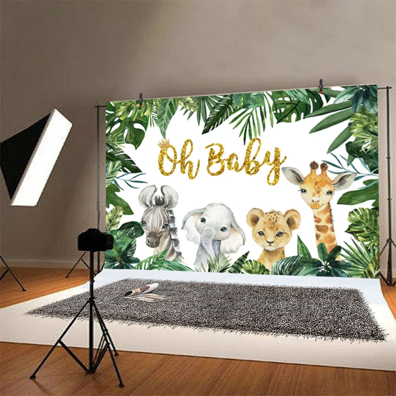 С надписью Oh Baby животных сафари джунглей фон для фотосъемки детс...