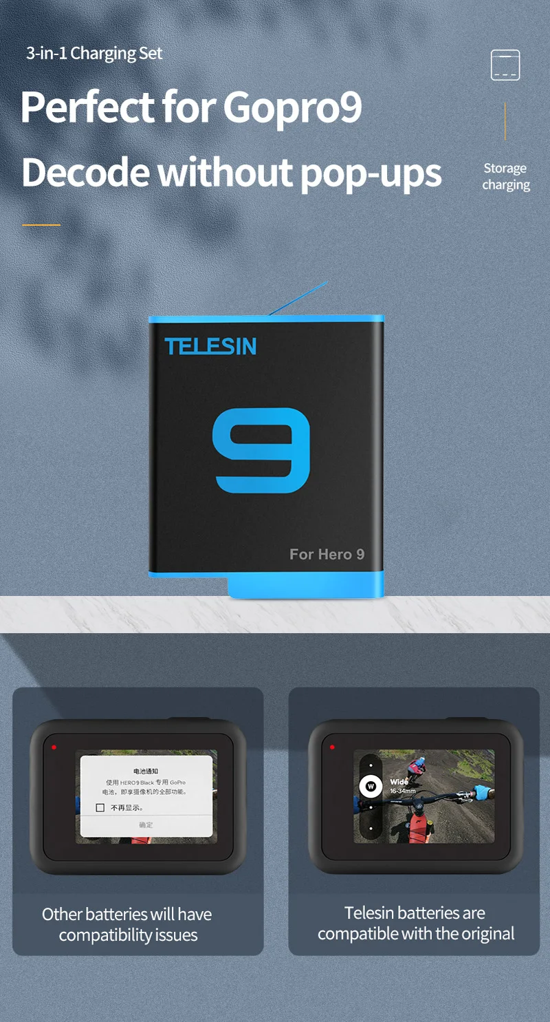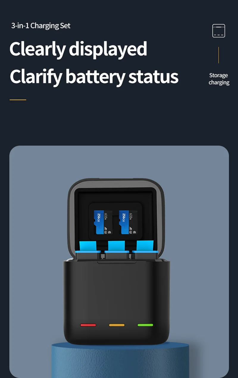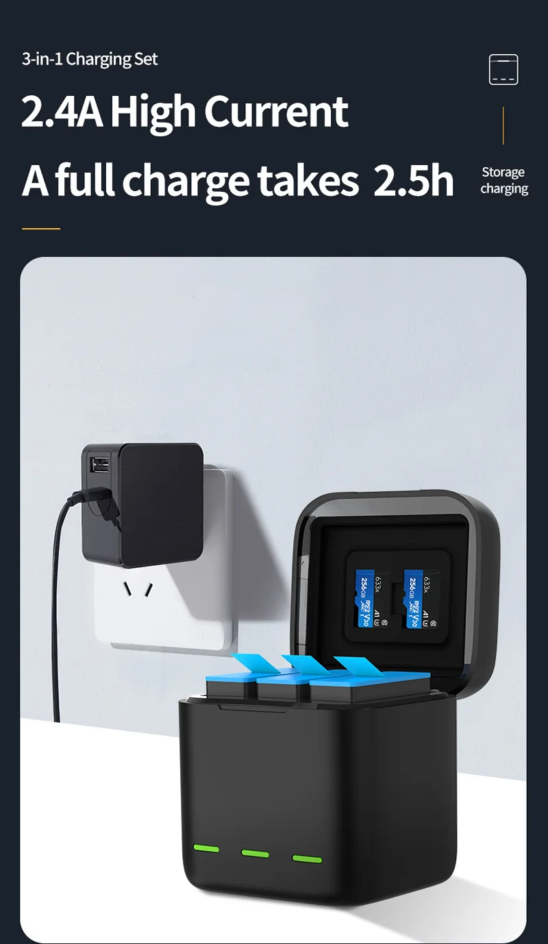 1. Большая емкость 1750 мАч, терка, чем Оригинальная батарея2. До 112 мин времени съемки на одной батарее (время использования отличается в разных режимах).3.100% идеально подходит для GoPro Hero 9 черного цвета, без всплывающих окон.4. Зарядное устройство от квадратного до круглого, более удобное на ощупь, как детская кожа.5. Девять защиты, используйте с уверенностью, аккумулятор и зарядное устройство безопасны.6. Три батареи во время зарядки и хранения, вмещает до двух tf-карт и трех батарей.7.2.4 большого тока, Полная зарядка занимает всего лишь 2,5 h.8. Силиконовый слот для карт, сохраняя при этом лучшую защиту.9. Магнитное открытие и закрытие, покрытие использует магнитное, простое, надежное управление.10. Противоскользящий силиконовый коврик, используйте в нижней части, чтобы избежать падения, больше безопасности.11. Интерфейс Type-c, поддержка передних и обратных вставок, не требуется адаптация кабелей.12. Четко отображенный, уточняющий состояние батареи, постоянно включается зеленый светильник, близкий к полноте желтый светильник остается на синем светильник дышит, Зарядка красный светильник остается на синем светильник дышит, В режиме ожидания всегда включен синий светильник.13. Легко помещается в рюкзак, не занимает много места.