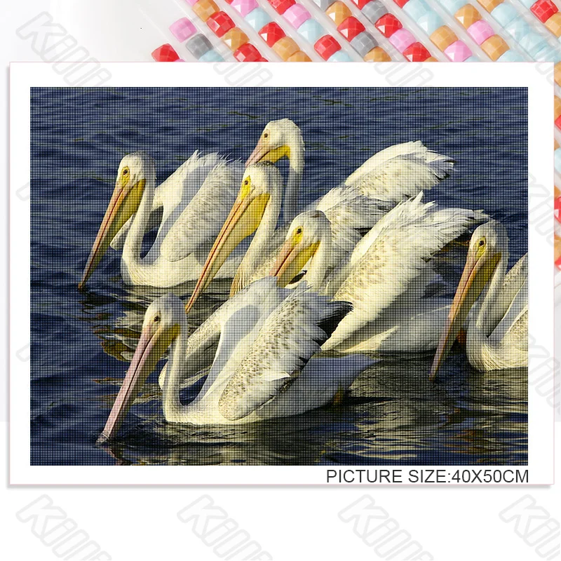 Алмазная живопись сделай сам, покрытая белыми перьями и светлым реб...