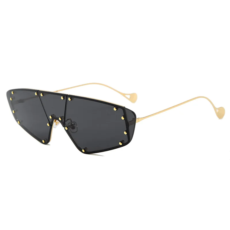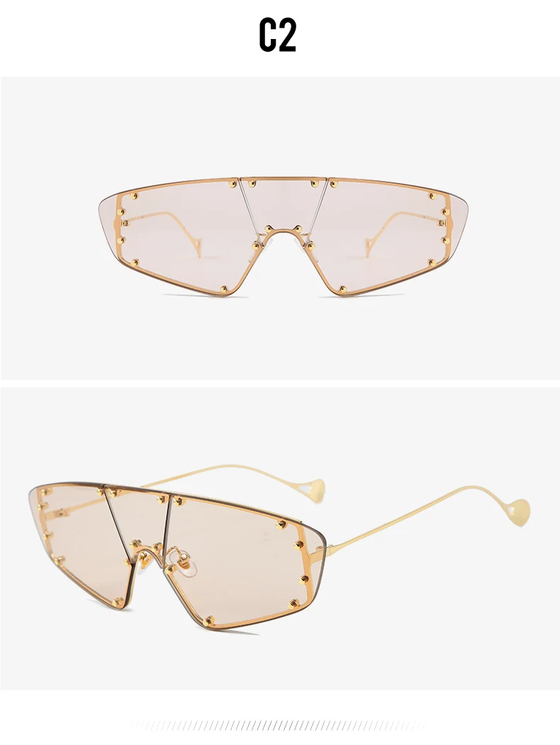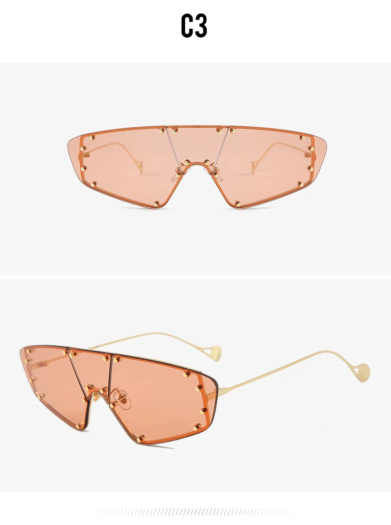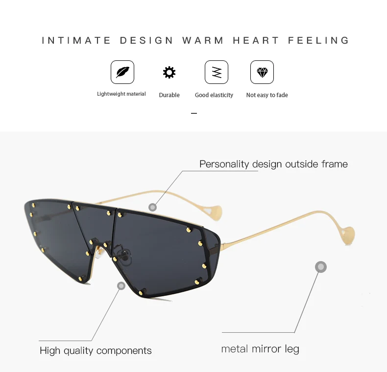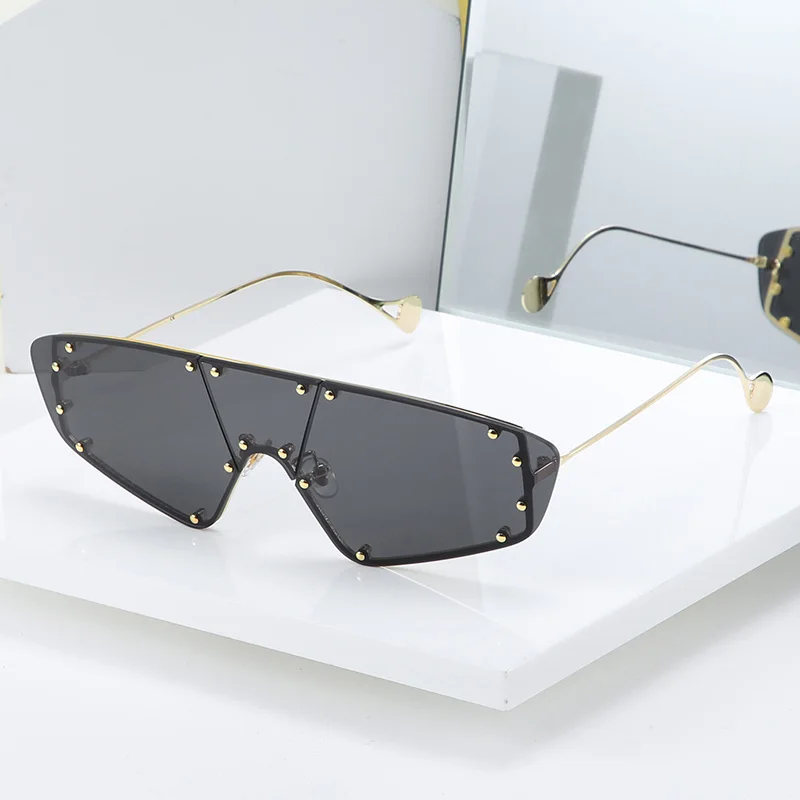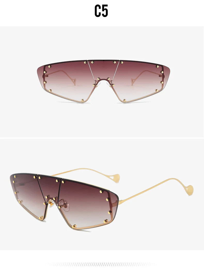 Новинка 2021 солнцезащитные очки без оправы с заклепками женские дизайнерские солнцезащитные очки в оправе из сплава оверсайз градиентные солнцезащитные очки модные женские прозрачные оттенки