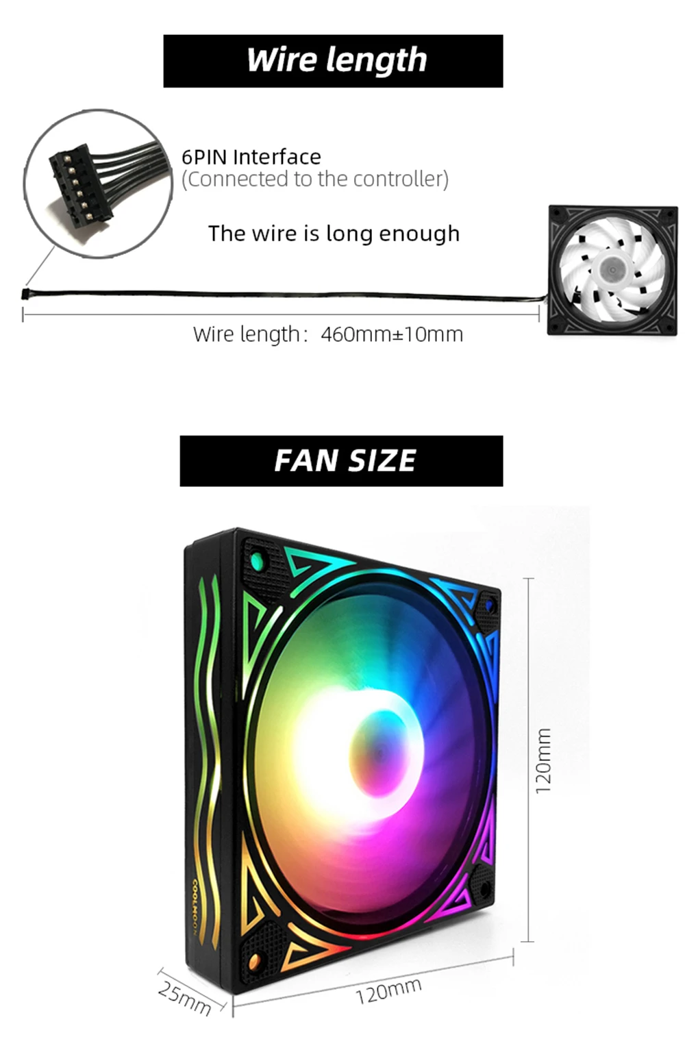 Этот вентилятор RGB 120 мм имеет 6-контактный интерфейс. Должен использоваться с контроллером Coolmoon.