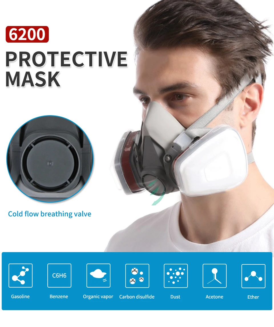Респиратор на все лицо PM005, пылезащитная и газовая маска, набор фильтров для покраски, распыления пестицидов, химического дыма, противопожарная защита на половину лица, 6200