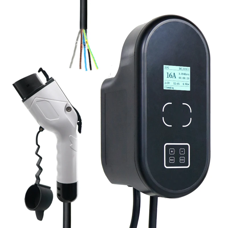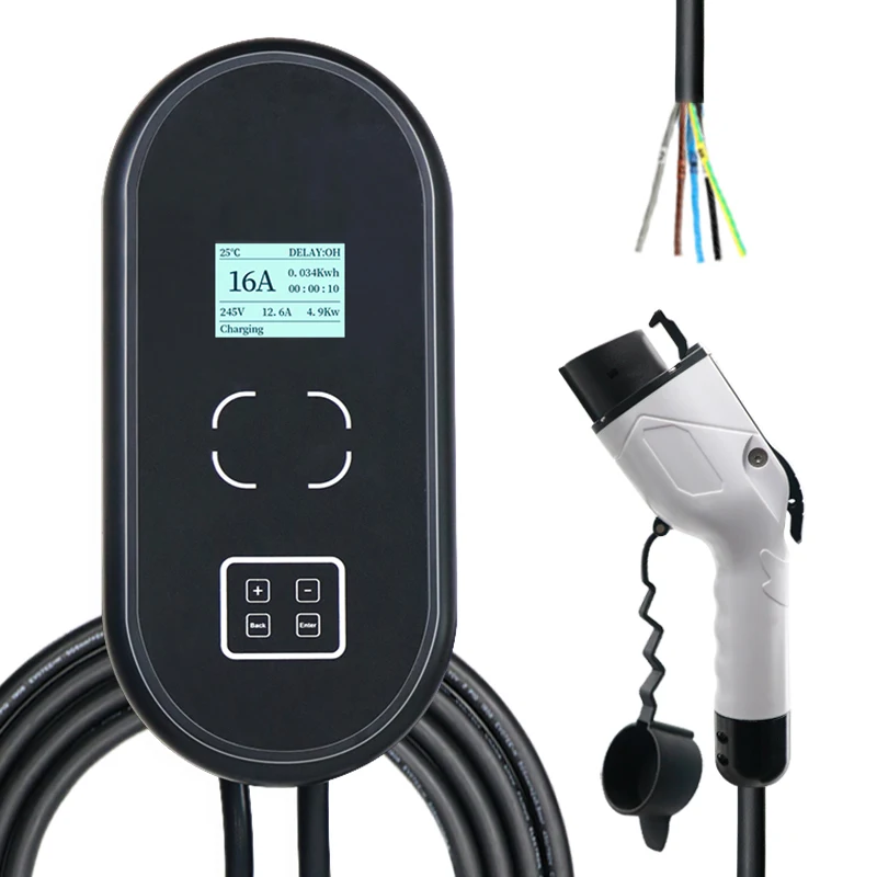 1.16A/32 A, 240V, 3.6kw/7,2 kw, уровень 1 домашняя зарядная станция EV.2. Простота в использовании, не нужно приложение для его запуска или подключения к домашней сети.3. Станция использует пластик и АБС-пластик, чтобы быть прочнее. Режим пуска кнопки и простая установка.4. ЖК-дисплей для отображения всех данных автомобиля на зарядной станции во время зарядки. Вы можете увидеть состояние зарядки, включая ток, напряжение и температуру. Винты помещаются в коробку, поэтому вам не придется беспокоиться о падении экрана.5. Кабель 5 м оставляет достаточно места между вашим автомобилем и зарядной станцией.