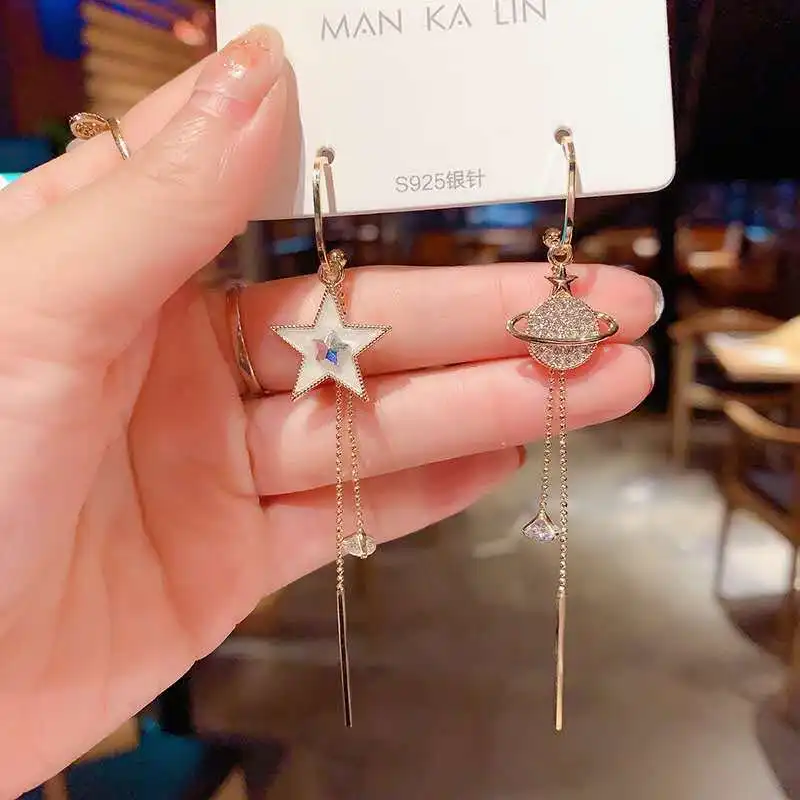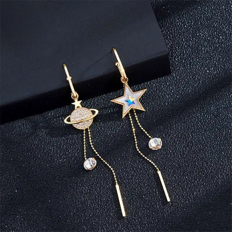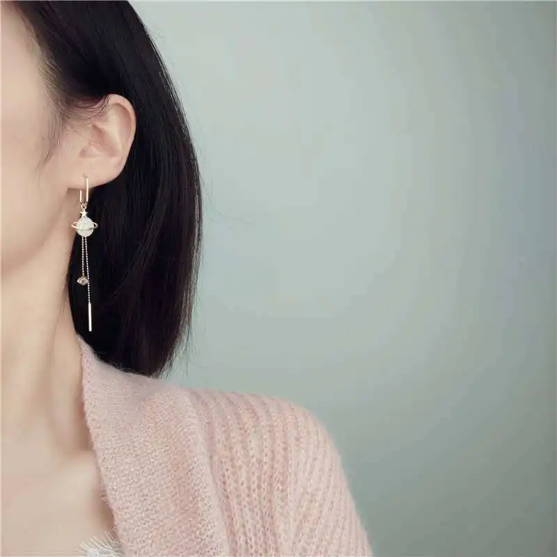 Очаровательные длинные кристаллические висячие серьги с кисточками и планетой золотого цвета для женщин, свадебные Висячие серьги, Модная бижутерия, подарки