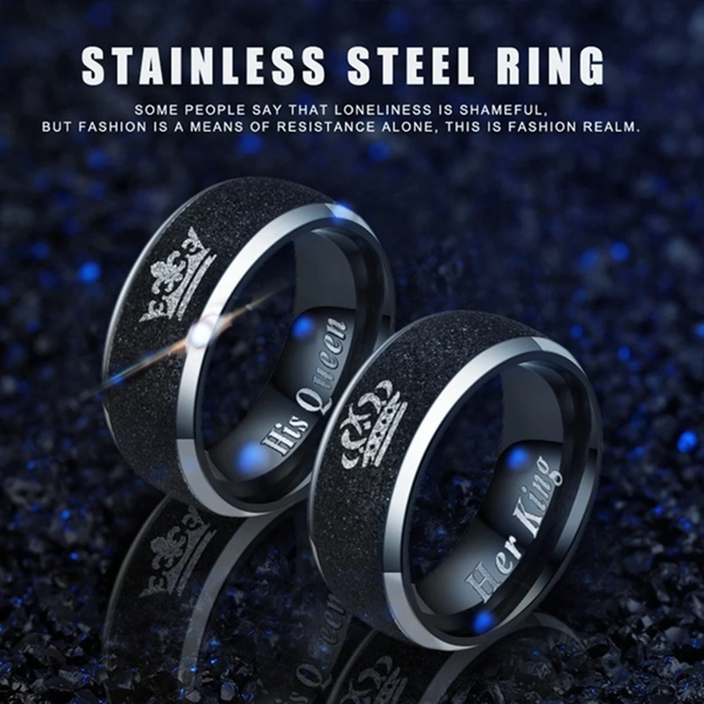 Кольцо мужское и женское, из титановой стали, с черным жемчугом и короной, с надписью на английском языке, 1 шт.