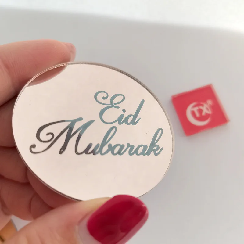 Новый ИД Мубарак 5 см круг акриловые кекс фигурки жениха и невесты; Цвета: золотистый, висячий торт Топпер для Hajj Mubarak торт украшения мусульманских ИД для выпечки