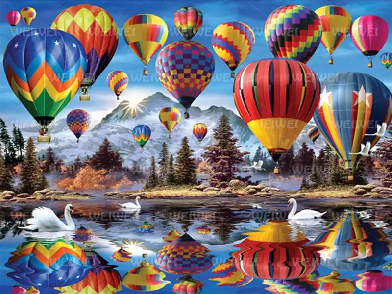 Пейзаж с воздушными шарами, алмазная живопись для взрослых, полная круглая Алмазная вышивка, стразы, мозаика, украшение, подарок для семьи