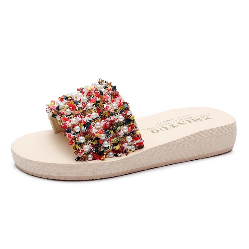 Сандалии на танкетке женские, босоножки на толстой подошве, симпатичные Тапочки, шлепанцы, лето 2020