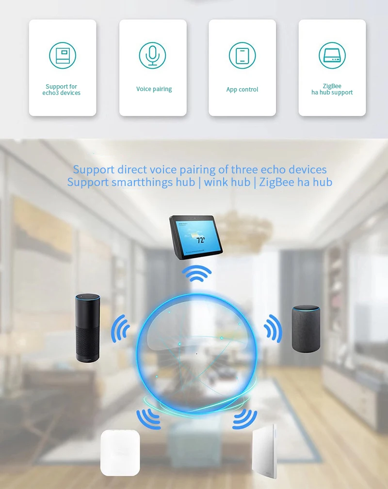 【Поддержка голосового управления Alexa Echo / Google Home через концентратор SmartThings или Tuya Zigbee hub.】