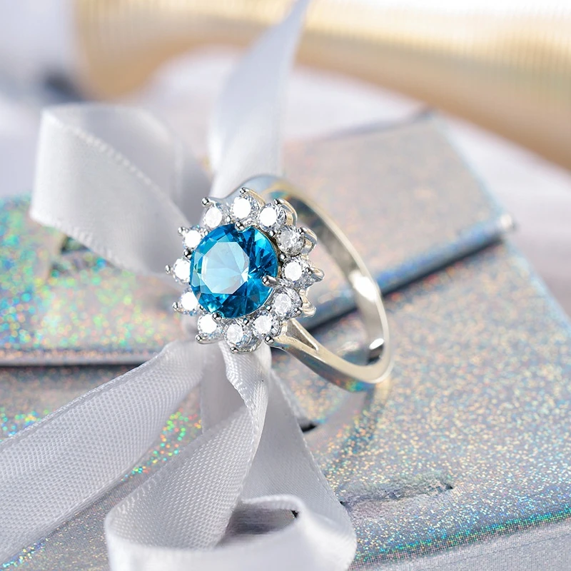 Модные женские кольца ювелирные изделия тенденция темперамент леди инкрустация кольцо с голубым Цирконом дам, обладающих великим шармом, ювелирные изделия для помолвки, свадьбы, подарки