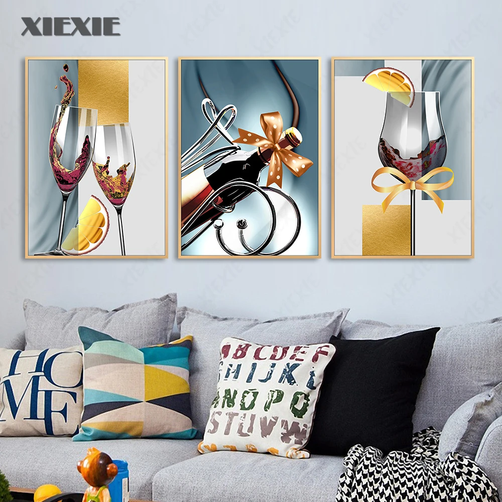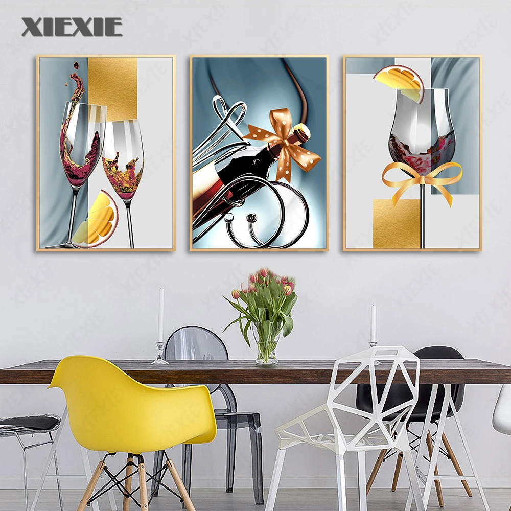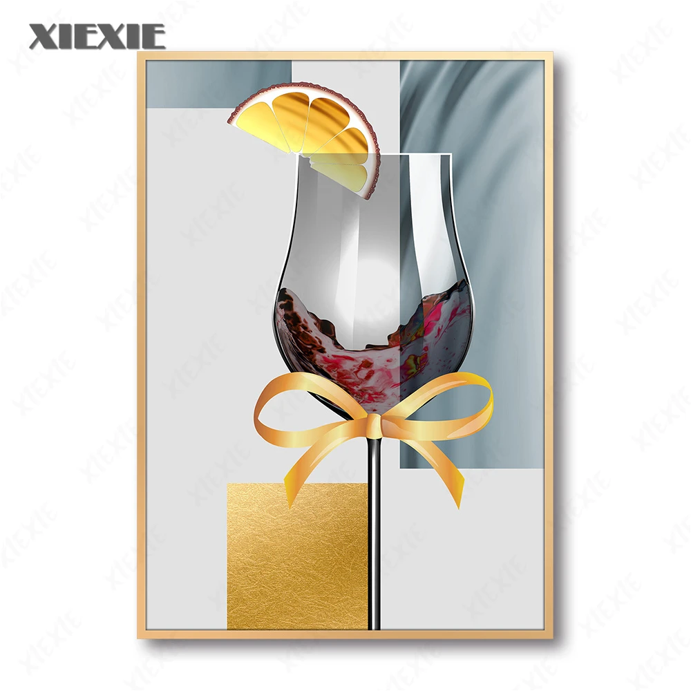 Настенная Картина на холсте Винный Бокал, Постер золотого цвета для гостиной, домашнего декора, в эстетике современной кухни