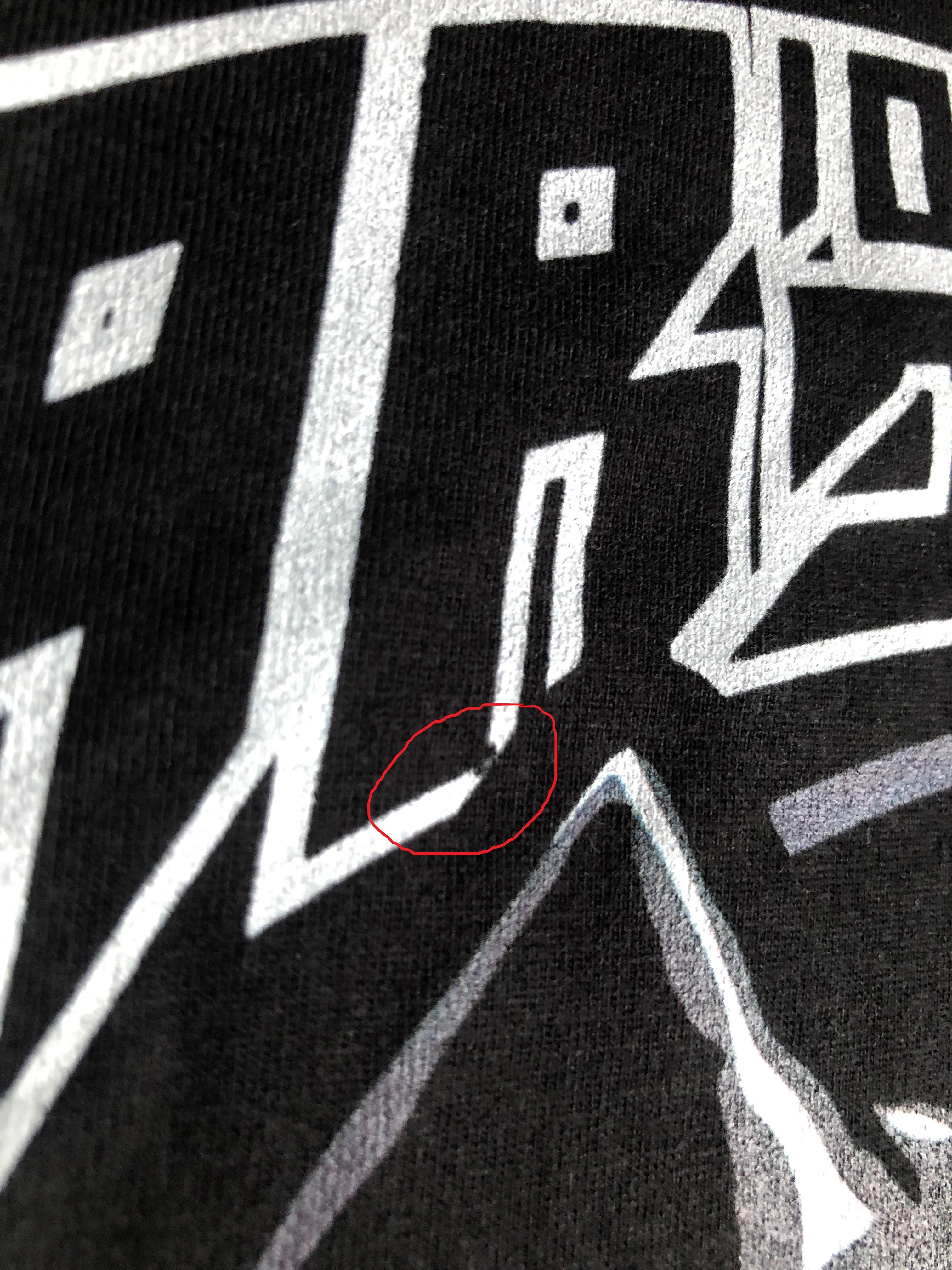 Футболка, которая была отправлена мне, не является брендом, который's демонстрируется на картинке. (изображение '01') Печать имела недостатки в нем, как он прибыл. (изображение '02') После стирки футболка, принт начинает осыпаются. (изображение '03' и '04')