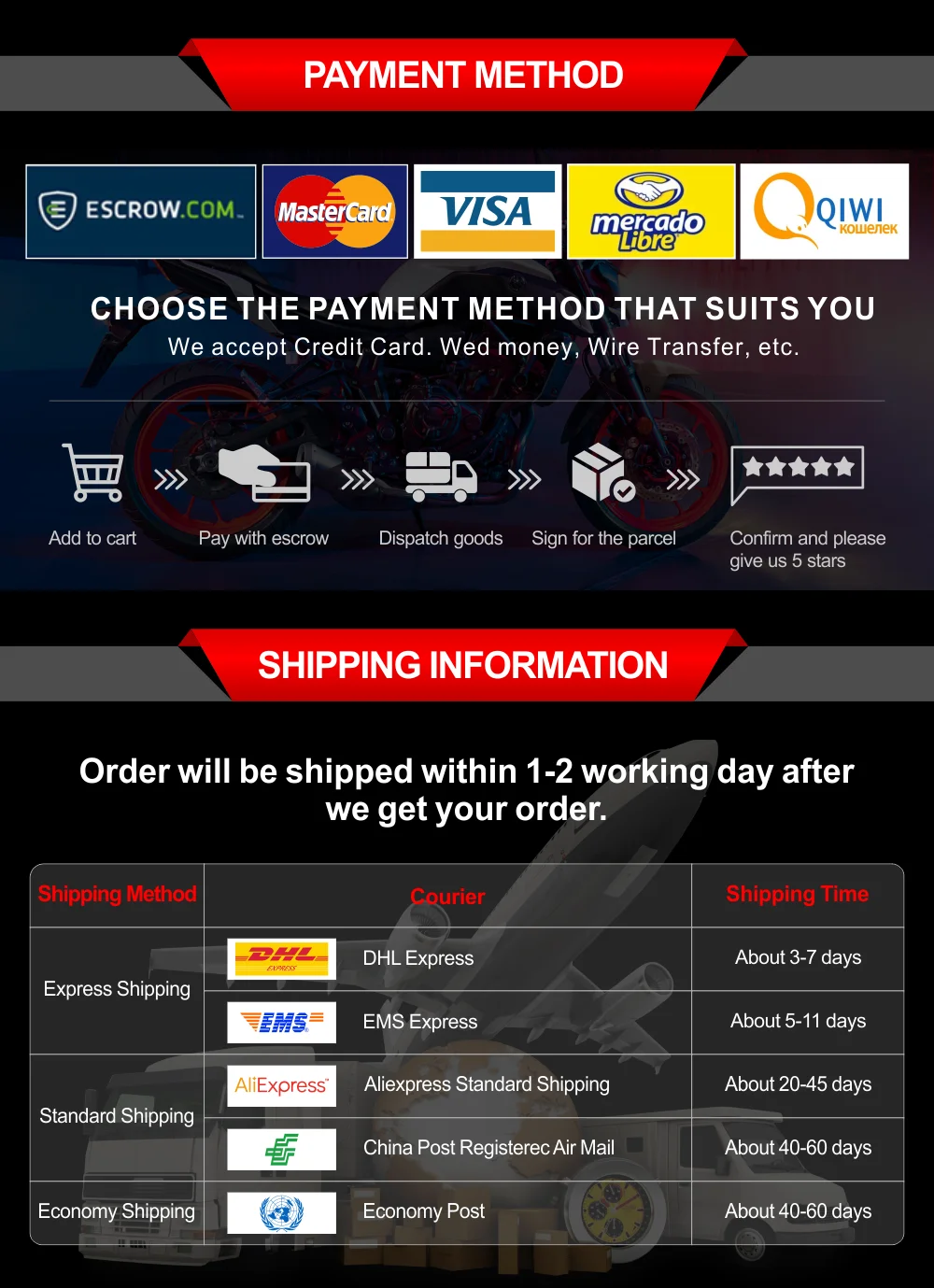 1. Продукты могут быть установлены и использованы без модификации, просты в установке, без инструкций по установке. 2. Анодирование, не легко выцветает и не ржавеет. 3. Внешний вид модного дизайна, отличная технология больше подходит для вашего велосипеда.