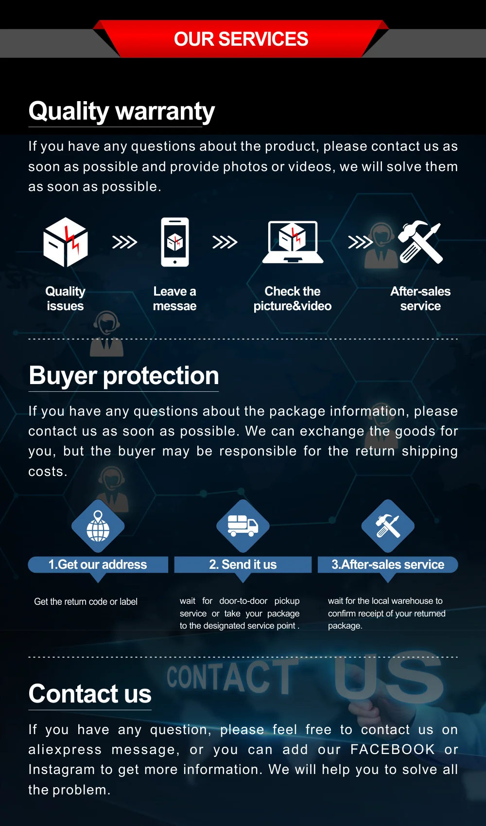 Мы поддерживаем высокие стандарты качества и стремимся к 100% удовлетворенности клиентов! Отзывы покупателей очень важны. Мы просим вас, ПРЕЖДЕ чем оставлять нам нейтральный или отрицательный отзыв, связаться с нами, чтобы мы могли разрешить проблему к общему удовольствию. Невозможно решить проблемы, если мы о них не знаем!