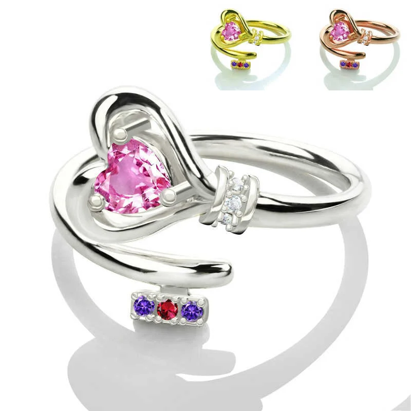 925 стерлингового серебра персонализированные пользовательские Камень Ключ к сердцу Регулируемые кольца для Для женщин по индивидуальному заказу, ювелирное изделие, подарок