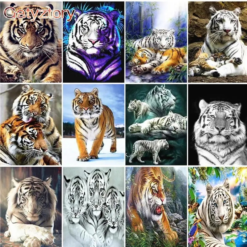 GATYZTORY алмазная живопись с тигром, полностью круглаяквадратная, 5D, алмазная вышивка сделай сам, мозаика ручной работы, подарок, украшение для дома и комнаты