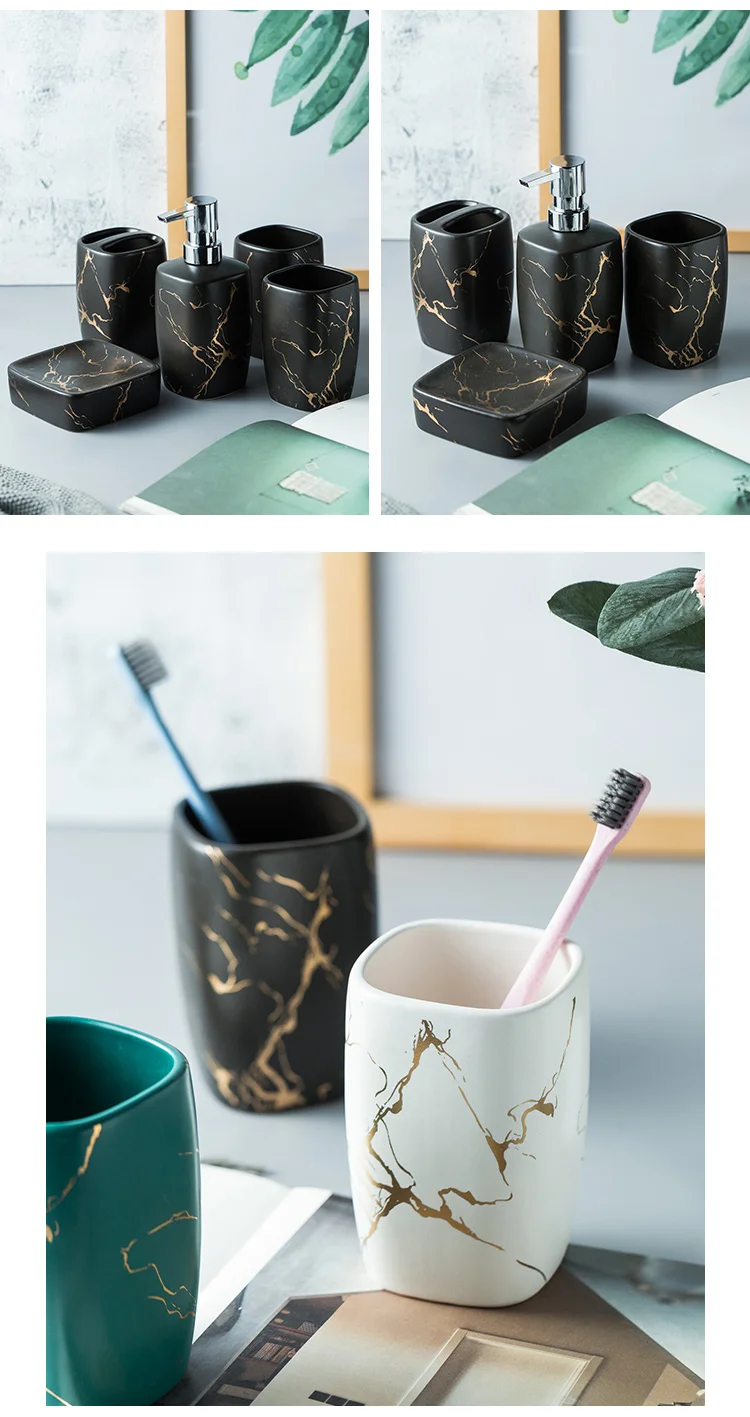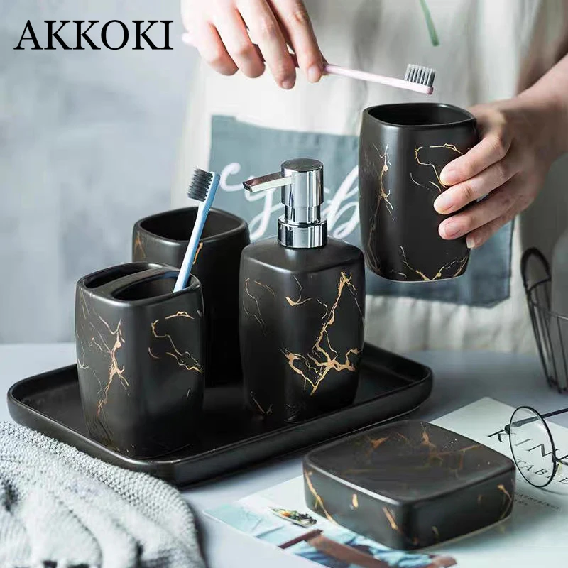 Мраморный керамический набор для ванной комнаты, 5 шт., диспенсер для мыла, держатель для зубной щетки, поднос для мыла, аксессуары для украшения ванной комнаты