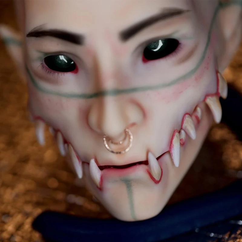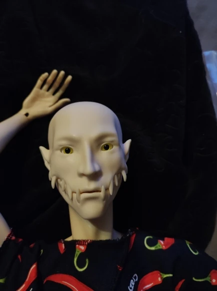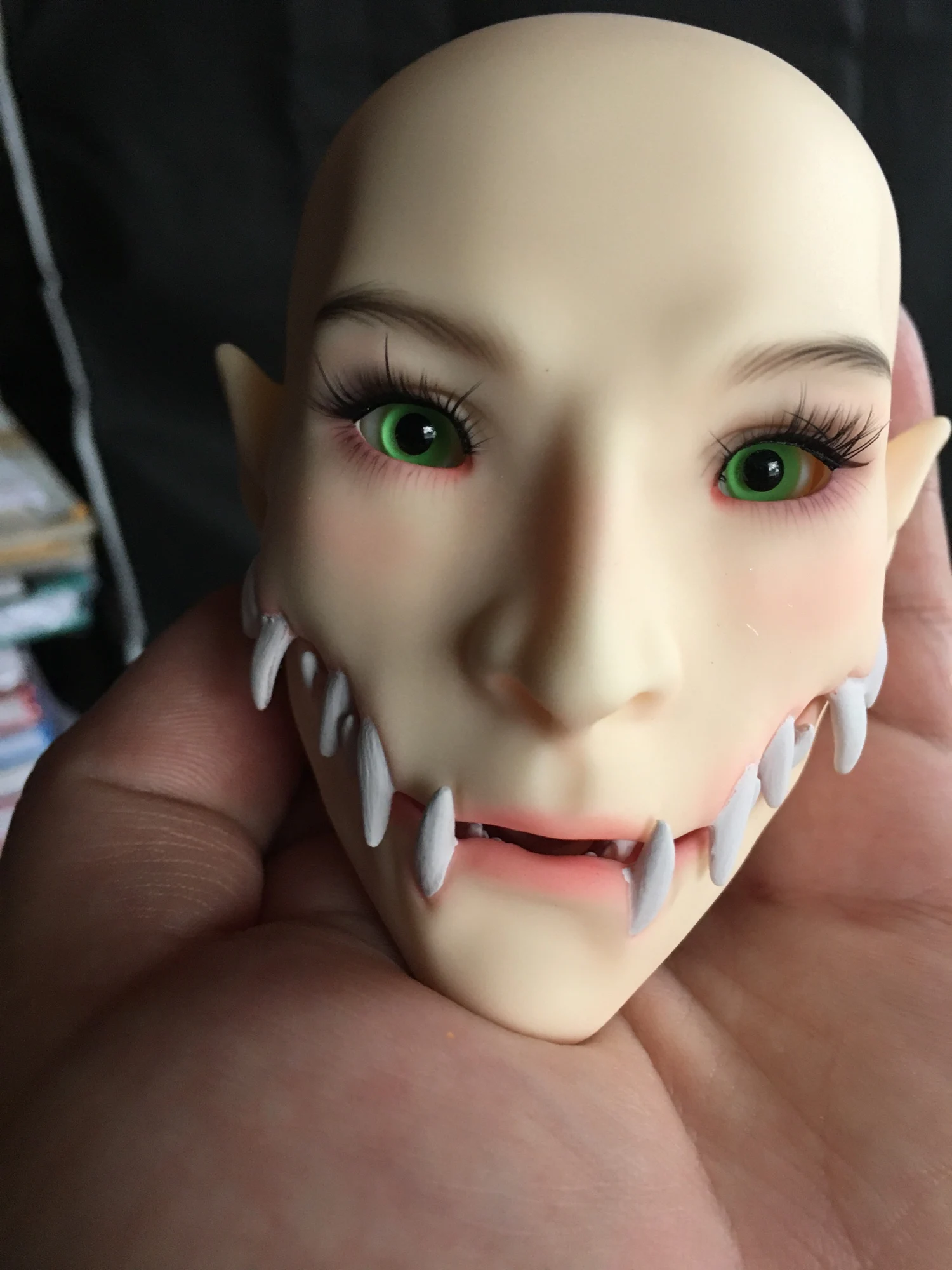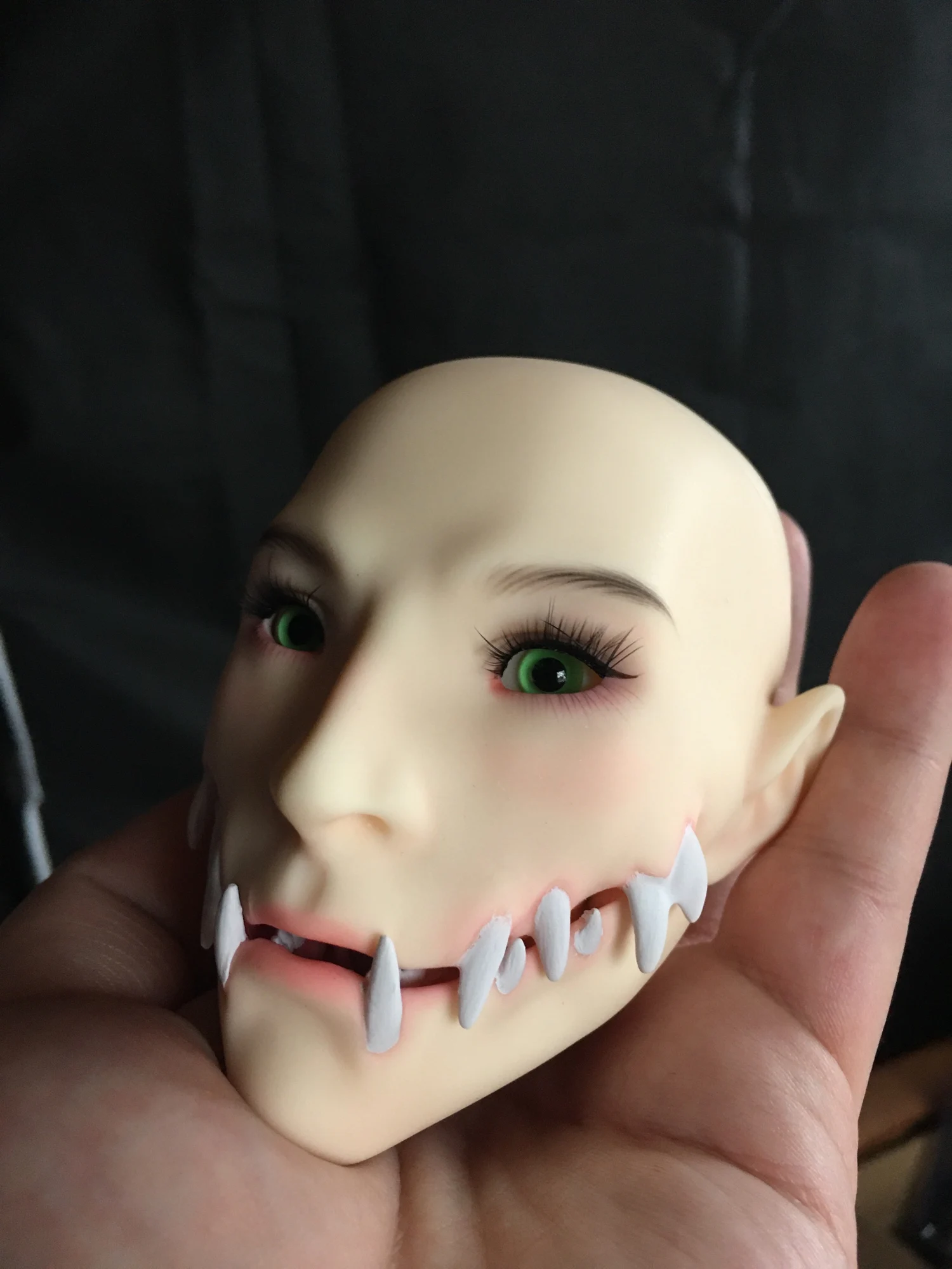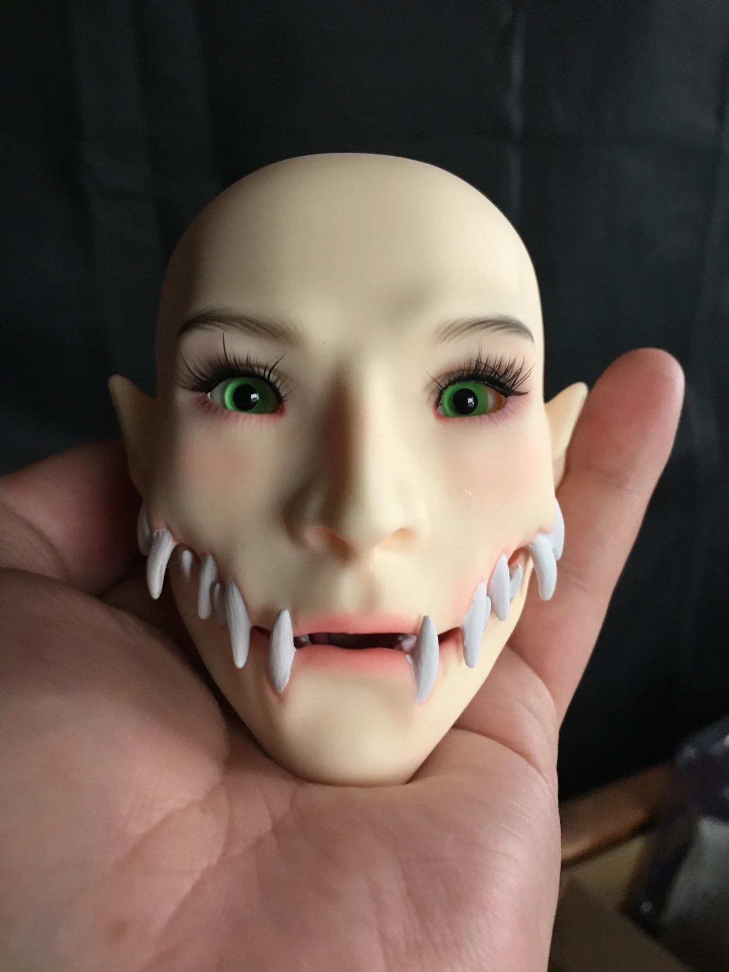 Идеальное лицо. Его челюсть не может быть закрыта, потому что она не удерживает вас, чтобы сделать это с силой. Его тело кажется грязным, и кукла не растягивается. У него есть некоторые дефекты, но я все еще люблю его.
